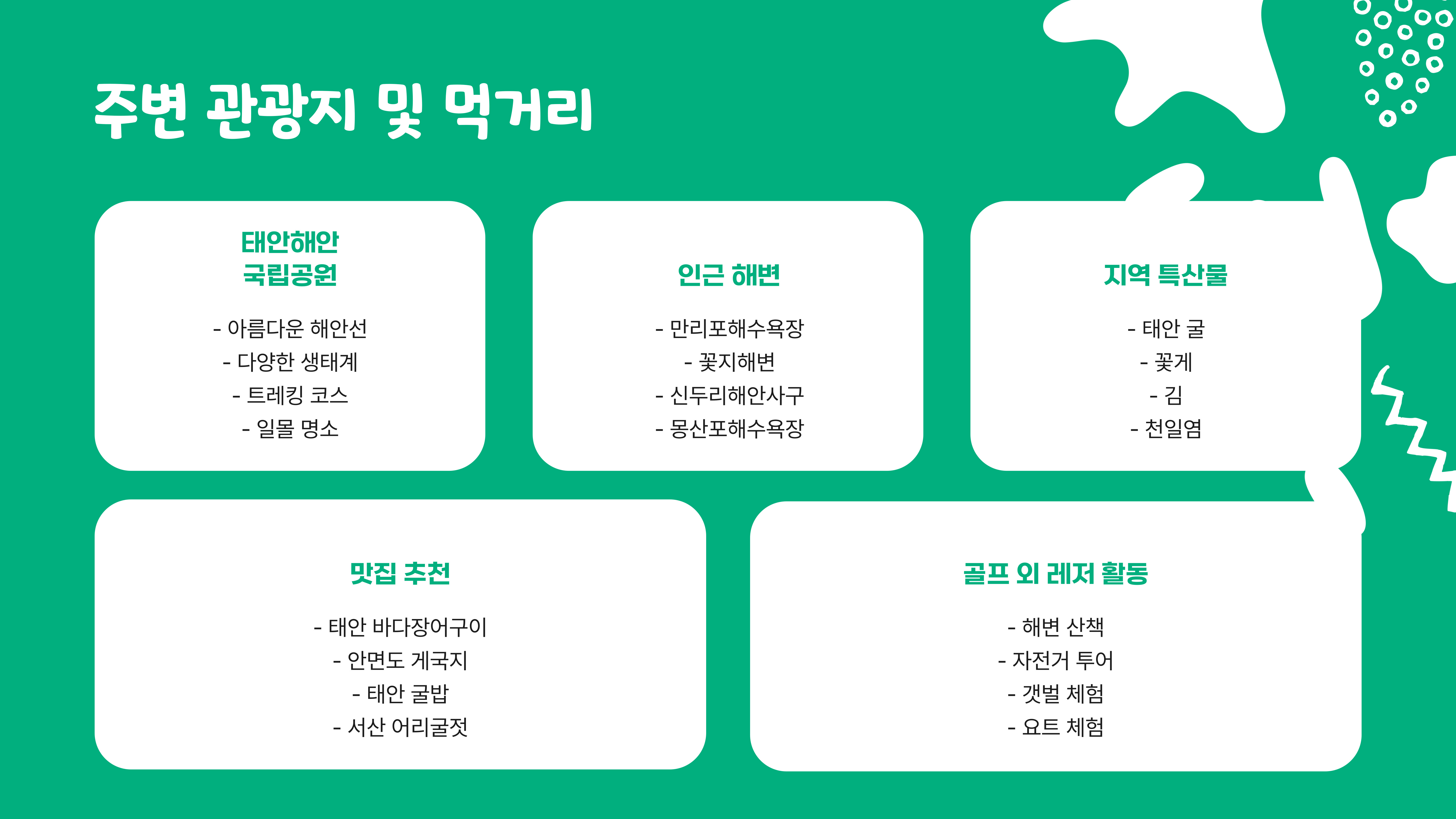 그리고 국내 최대 규모의 해수욕장과 해상 공원인 태안 해안국립공원과도